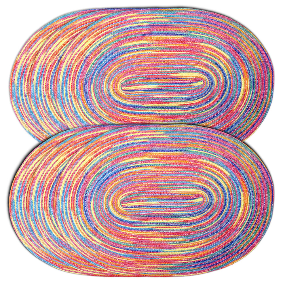 CAIT CHAPMAN HOME COLLECTION Multi-Color Braided Woven Fabric Placemats (12""""x18"""" Oval Placemat Rainbow)