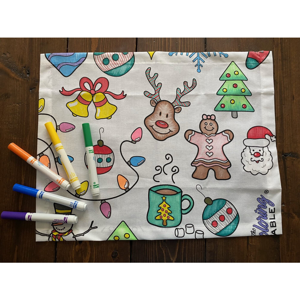 The Coloring Table - Holiday Design - Set of 4 Placemats (14""""x18"""") - Fabric Coloring Placemats - Colorable Designs - Washable and Reusable - Co