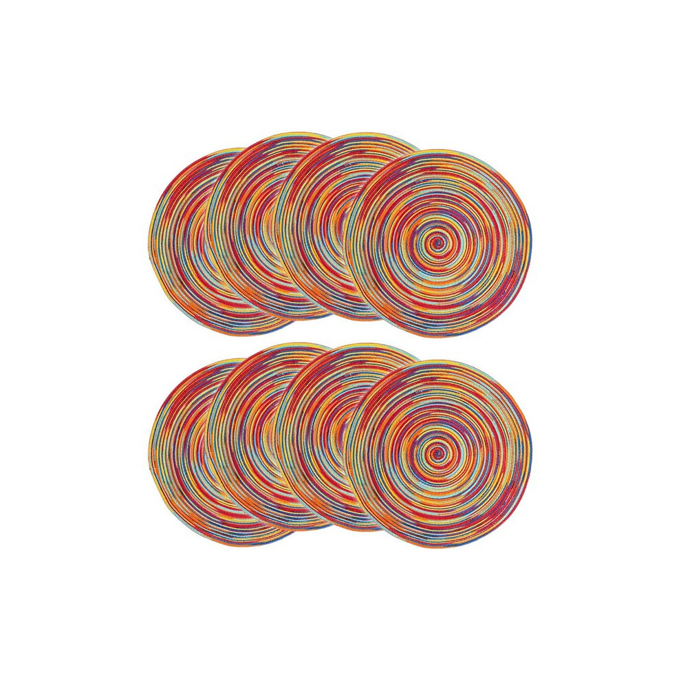 Colorful 18cm Round Braided Fabric Placemats Set of 8 Dining Table Mat for Kitchen Party Decor
