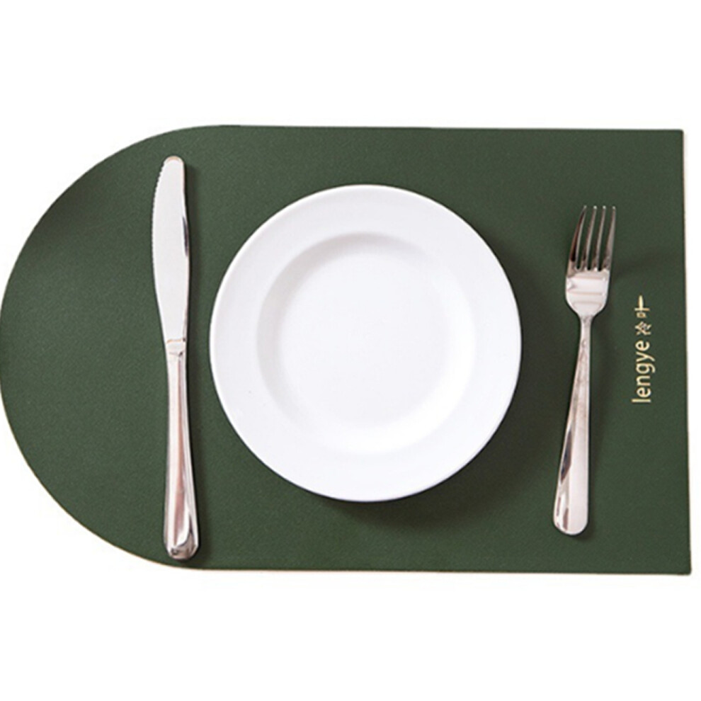 P11 Green Leather Placemat Oil-proof and Anti-slip Table Mat Washable Fabric Placemats Heat Pad Table Mat for Dining Table