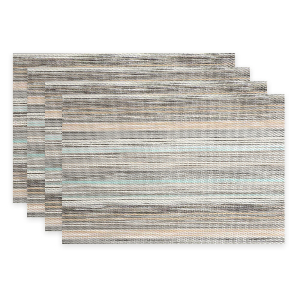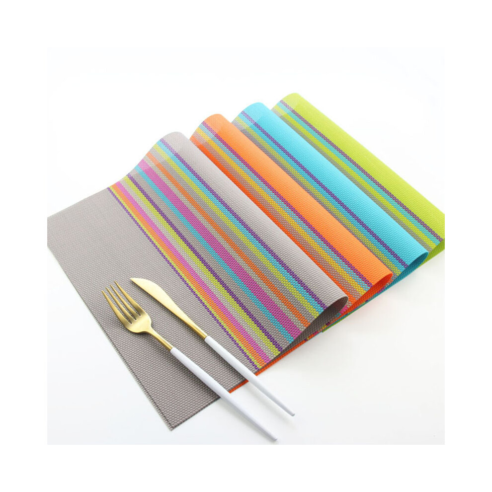 Reversible PVC Placemats, Washable Vinyl Placemats for Coffee Tables, 6pcs Heat Resistant Linen Fabric Placemats, Non Slip Colorful Stripe Design for