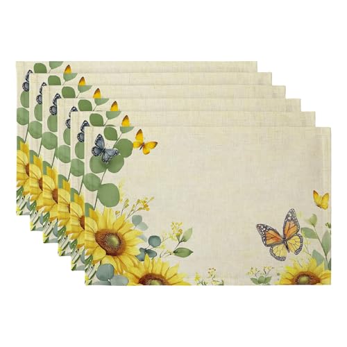 Sunflower Place Mats, Waterproof Fabric Dining Table Placemats with Sunflower Pattern, Easy Care and Washable Set for Restaurants and Home (4PCS)
