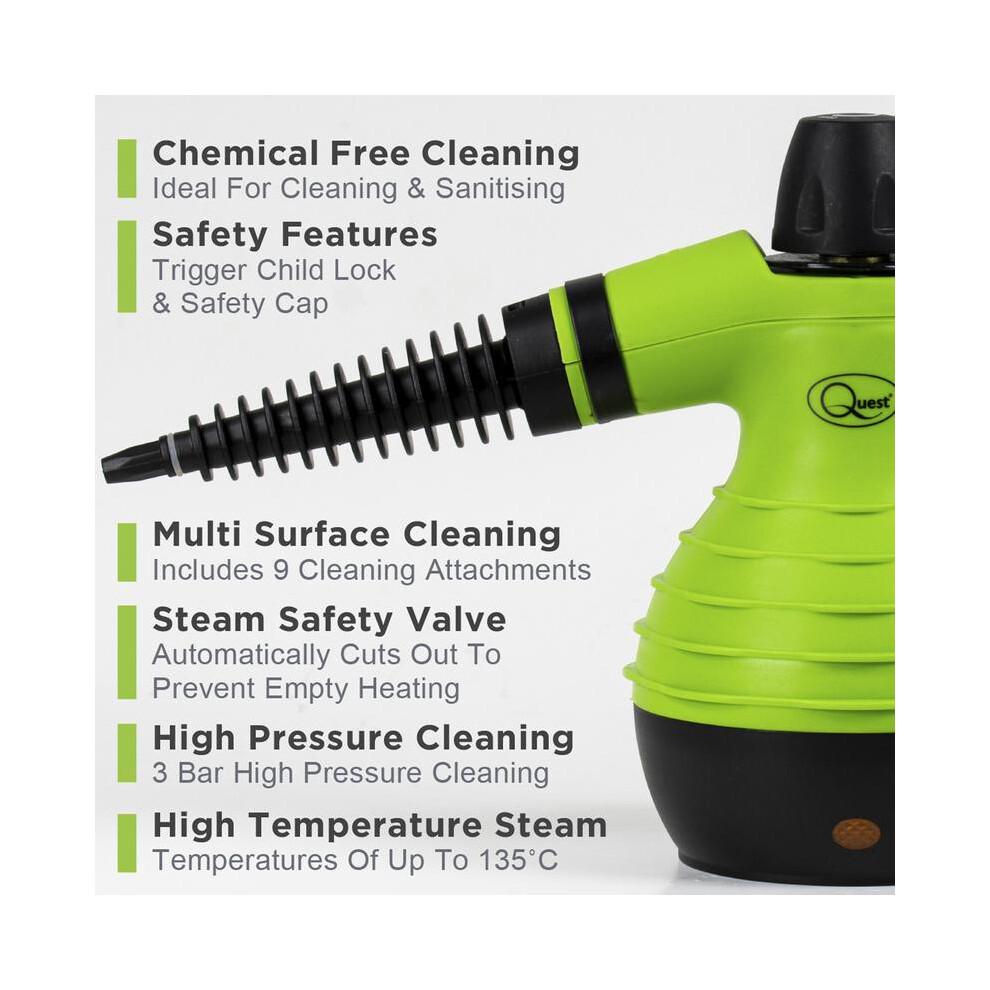 (Default) Quest Handheld Steam Cleaner - Fabric and Garment Steamer - Multi Purpose High Pressure Chemical Free Cleaning - Green - Car Cleaning Produc