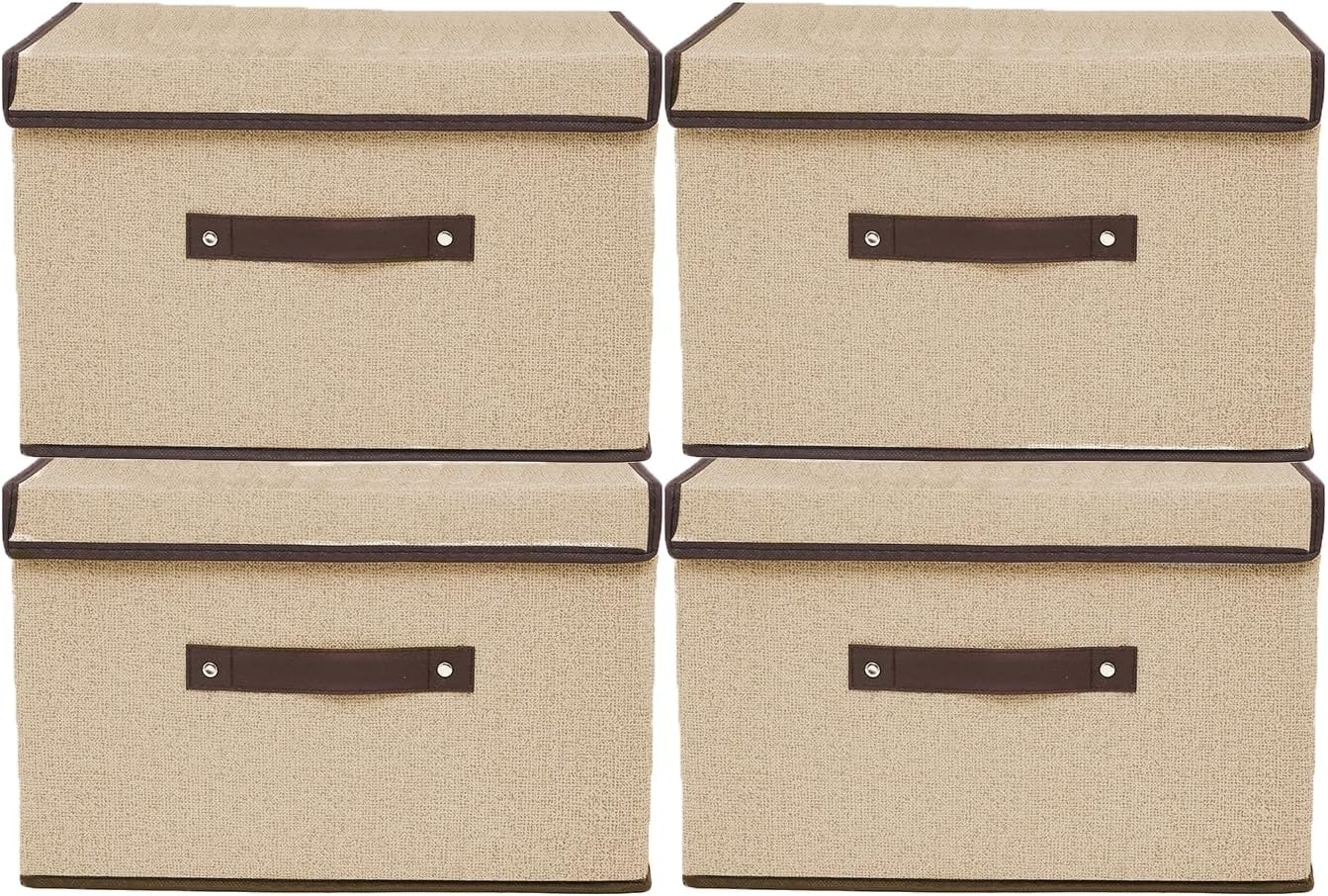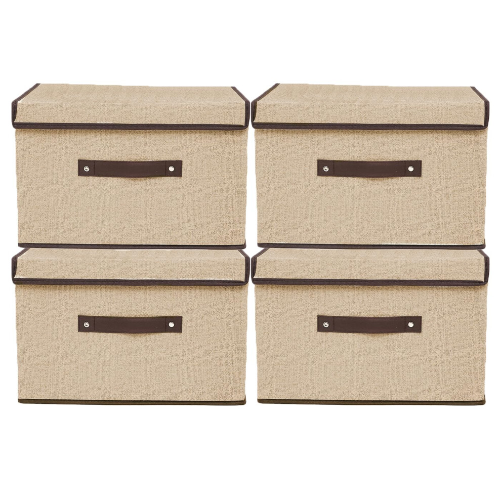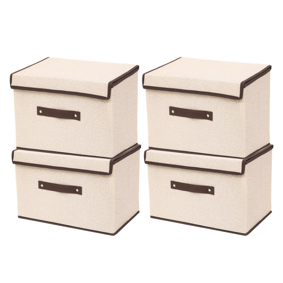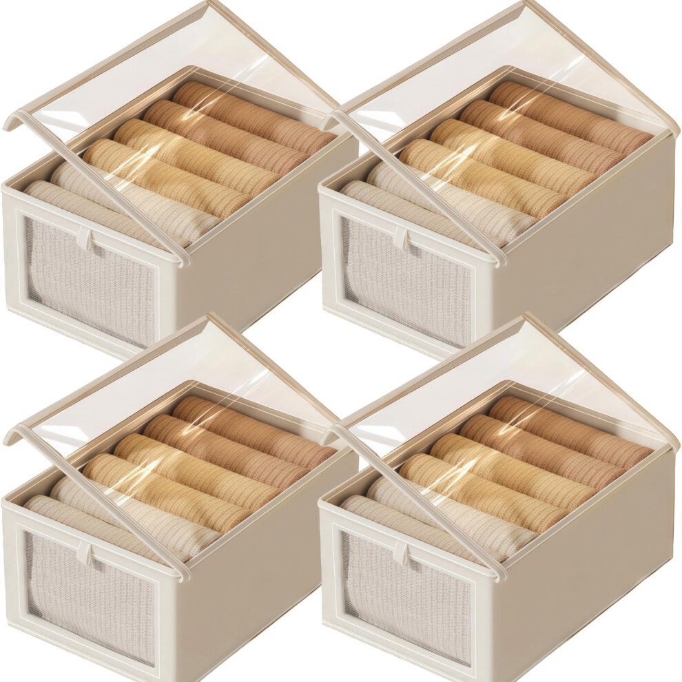 Tosoda Wardrobe Fabric Storage Organiser Boxes with Lids Clothes Jeans Organizer for Wardrobe Shelves Drawers (Beige - 4Pcs with Lids)