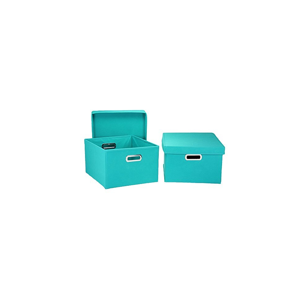 Household Essentials Fabric Storage Boxes with Lids and Handles, Aqua