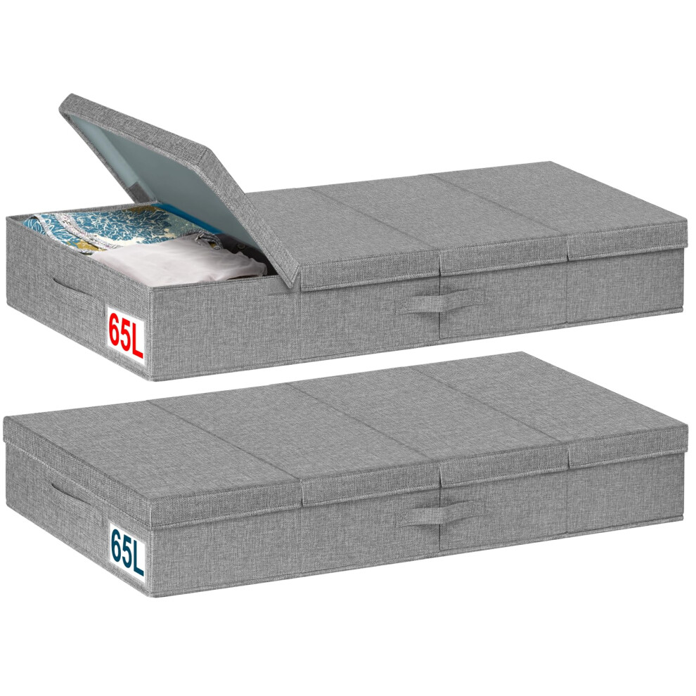mepure 2 Pack 65L Underbed Storage, 106.7x42x15cm, Fabric Under Bed Storage Boxes with Lids, Large Foldable Clothes Storage Box W/Handle, Under Bed Storage Organiser for Clothes Blankets Shoes Toys