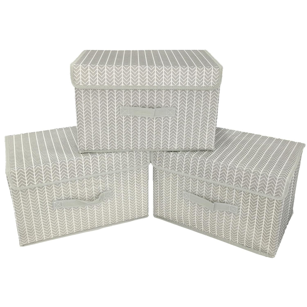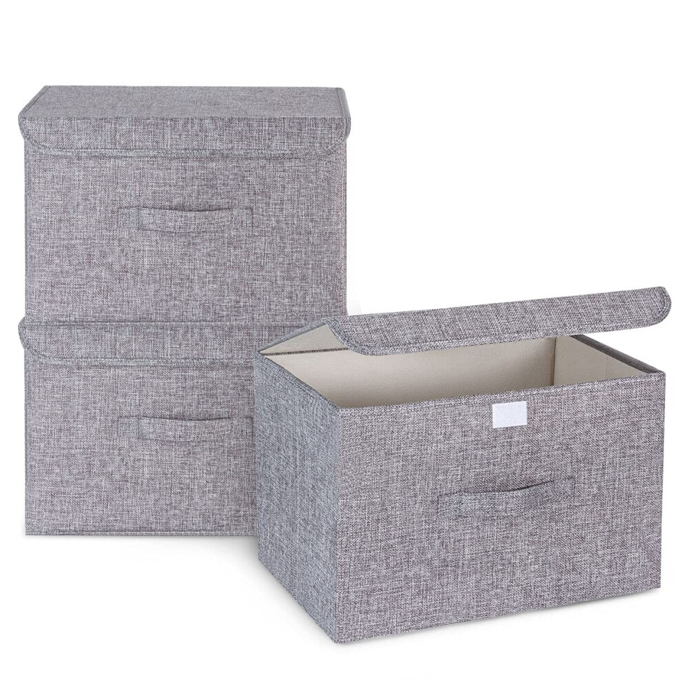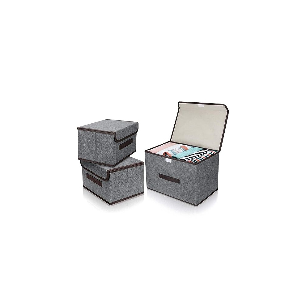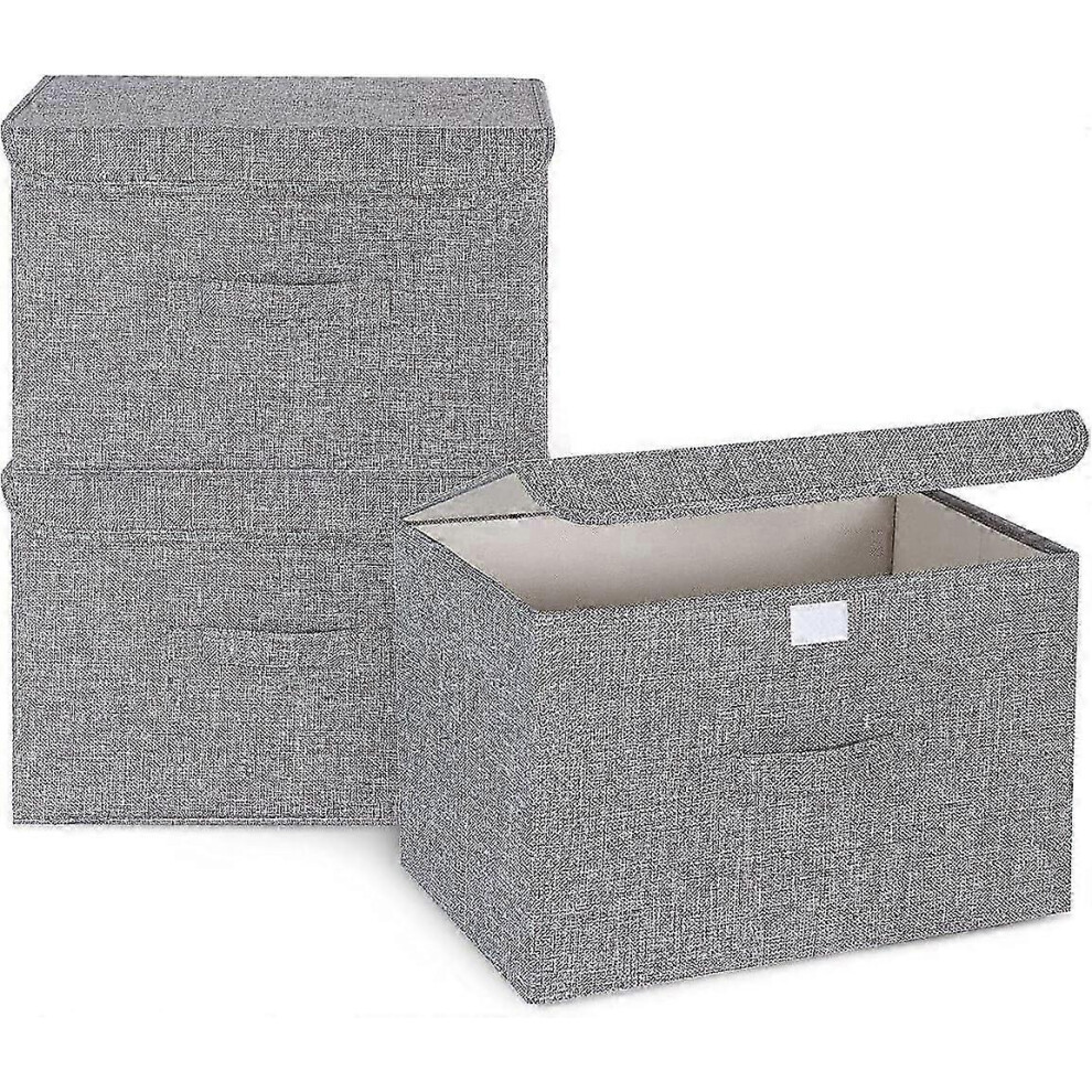 3Pcs Fabric Storage Boxes With Lids For Wardrobe Clothes Toy Foldable Linen 37*24*25cm (Grey)