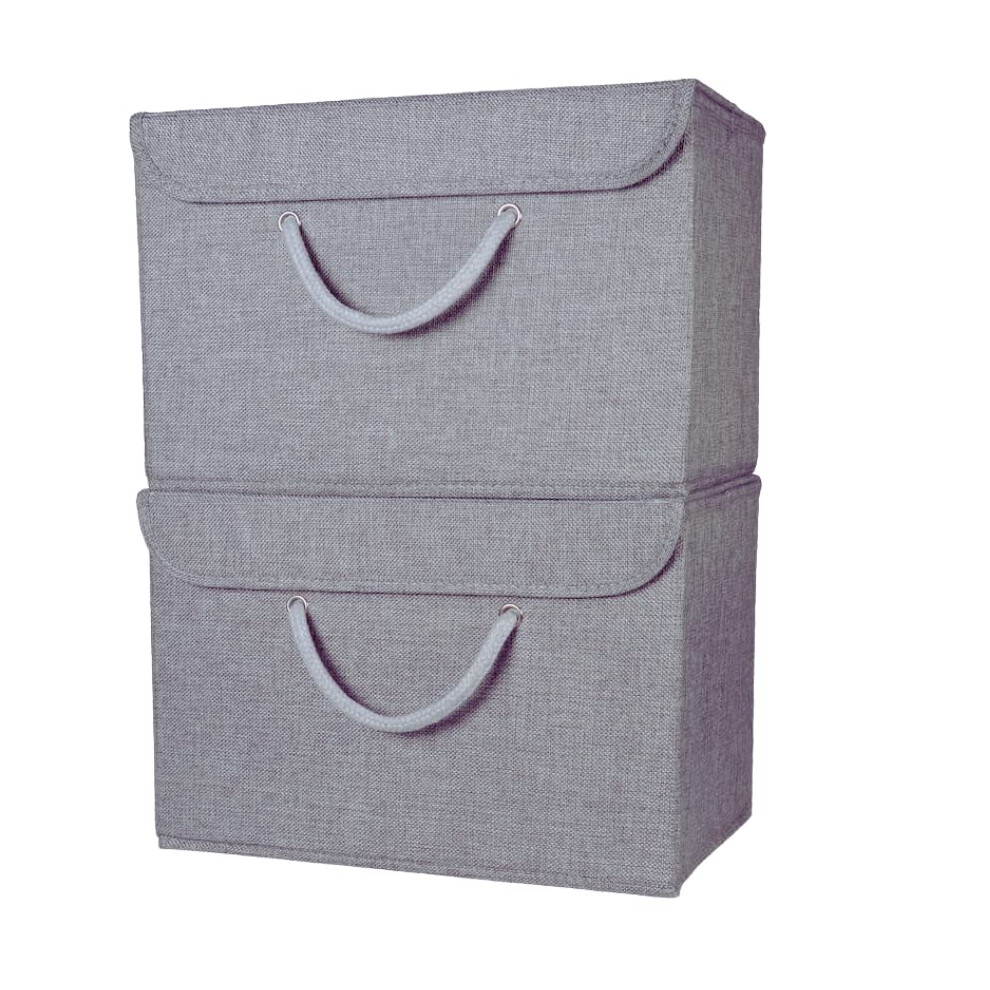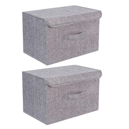 Booxihome 2Pcs Fabric Storage Boxes With Lids Foldable For Wardrobe Clothes Toy Linen 37 * 24 * 25cm (Grey)