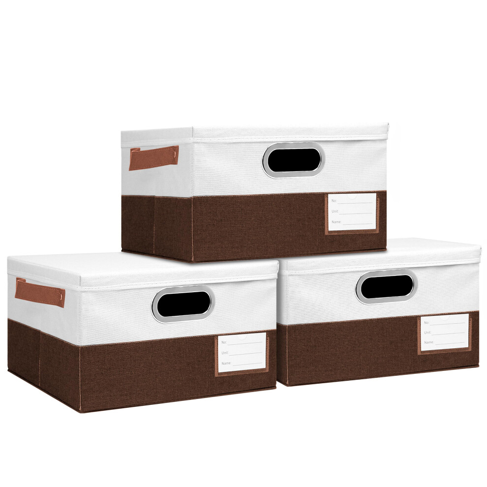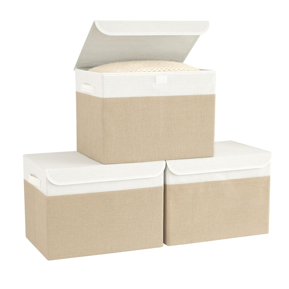 Foldable Fabric Storage Boxes with Lids and Handles for Closet Bedroom Living Room, 3PCS Brown White