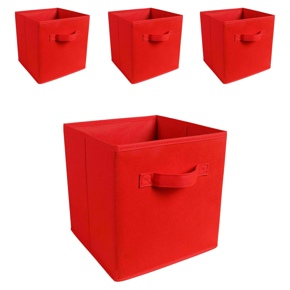 Storage Cubes Fabric Storage Boxes with Lids Pack of 4 Red Reinforced Handles Dustproof Bins for Clothes Toys Office Supplies