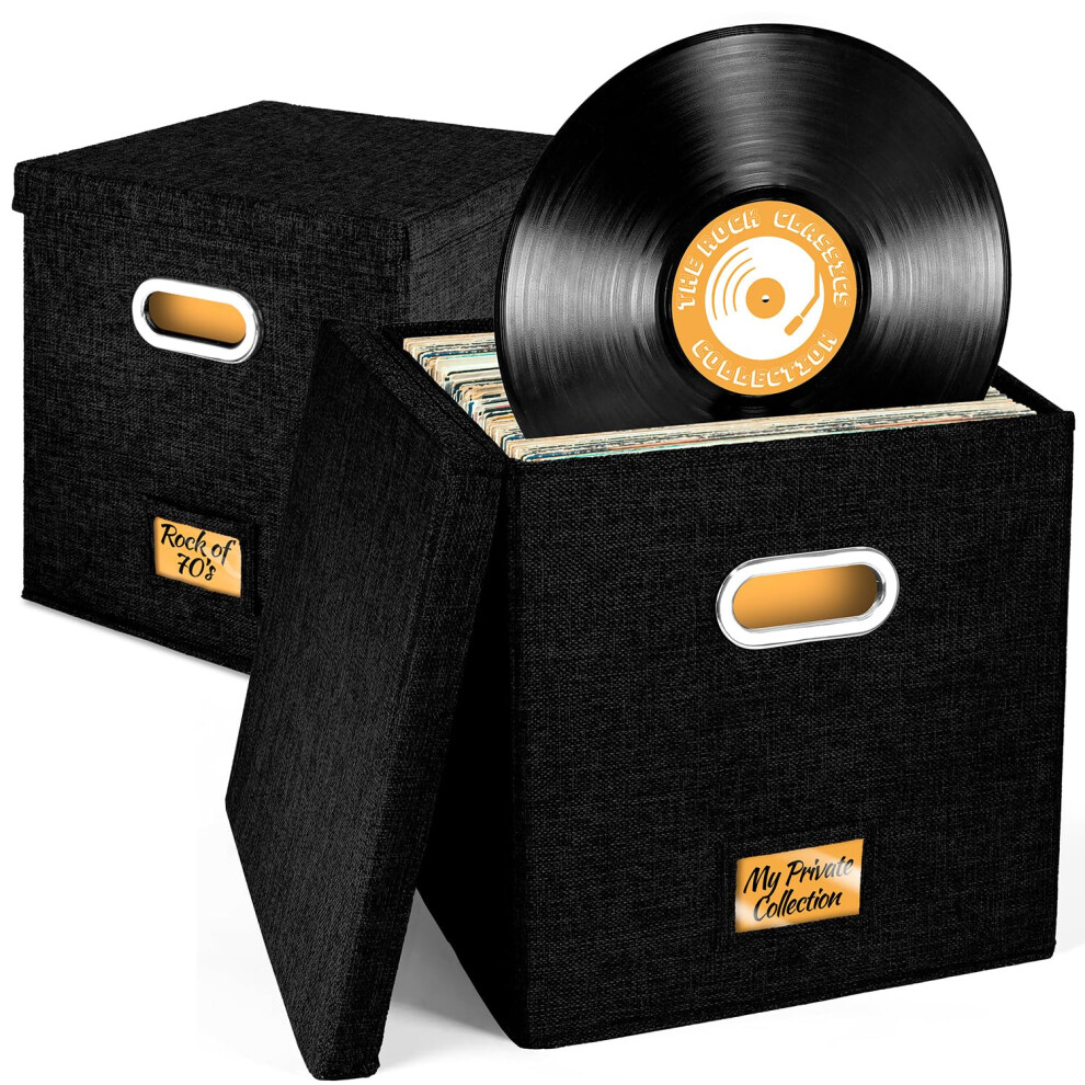 Set of 2 Vinyl Record Storage Box for up to 50+ 12Inch Albums Records Crate LP Album Storage Fabric Storage Boxes with Lids for Moving Office Clo