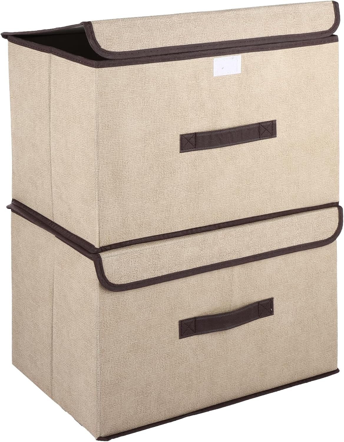 (As show, One size) 2 Pcs/set Fabric Storage Boxes With Lids Foldable Storage Cube Organizer Bins Storage Bags For Clothes Books Toys(beige) (d-583-a)