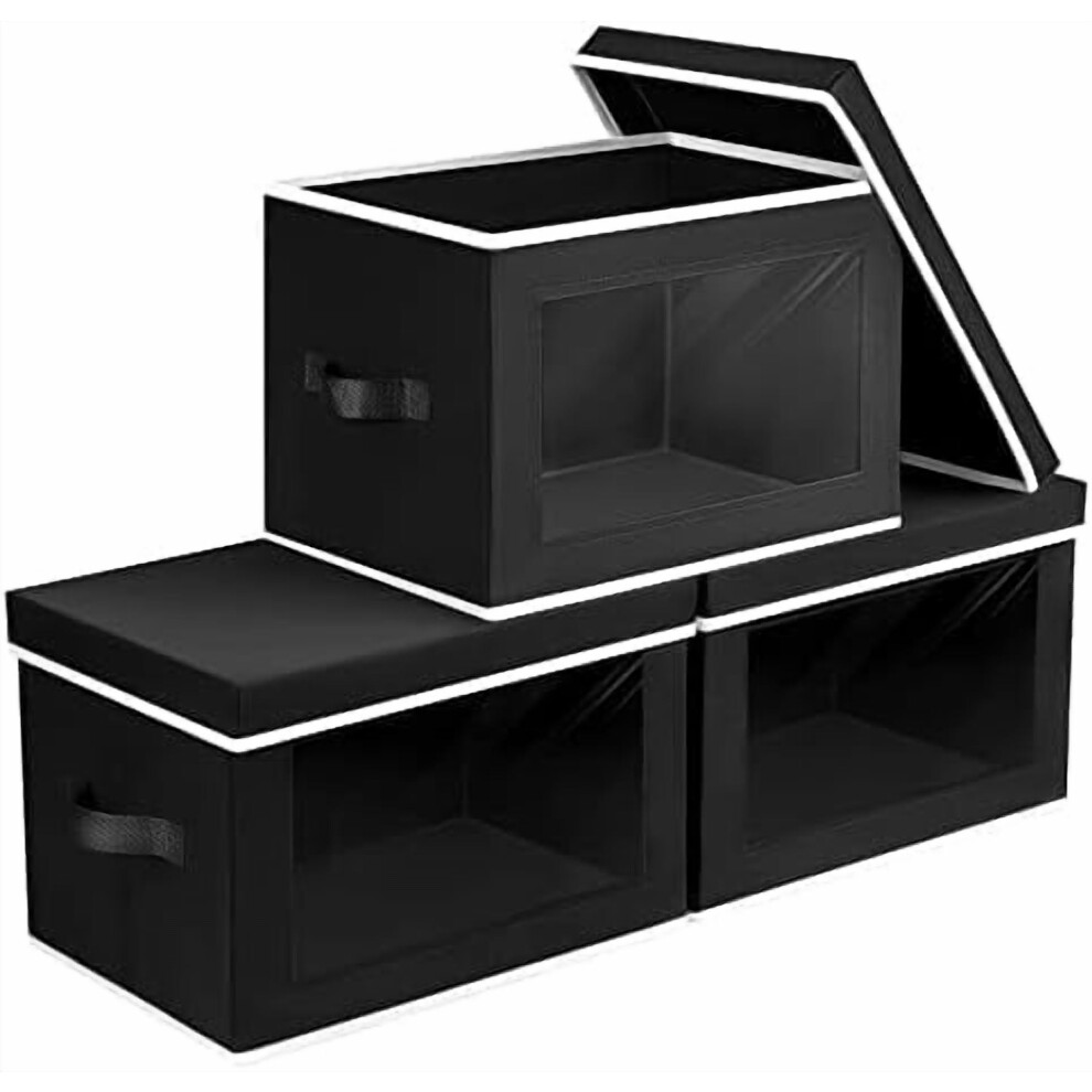 Collapsible Fabric Storage Boxes with Lids, Handles & Window â 3-Pack Black, Compatible with Closet Organizing