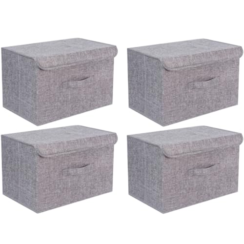 Booxihome 4Pcs Fabric Storage Boxes With Lids For Wardrobe Clothes Toy Foldable Linen 37 * 24 * 25cm (Grey)