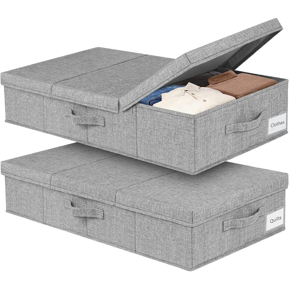 mepure 2 Pack 48L Underbed Storage, 79x40x15cm, Fabric Under Bed Storage Boxes with Lids, Large Foldable Clothes Storage Box W/Handle, Under Bed Storage Organiser for Clothes Blankets Shoes Toys, Grey