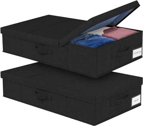 mepure 2 Pack 48L Underbed Storage, 79x40x15cm, Fabric Under Bed Storage Boxes with Lids, Large Foldable Clothes Storage Box W/Handle, Under Bed Storage Organiser for Clothes Blankets Shoes, Black