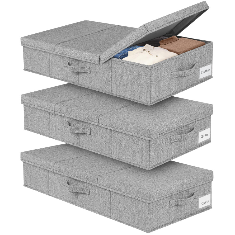 mepure 3 Pack 48L Underbed Storage, 79x40x15cm, Fabric Under Bed Storage Boxes with Lids, Large Foldable Clothes Storage Box W/Handle, Under Bed Storage Organiser for Clothes Blankets Shoes Toys, Grey