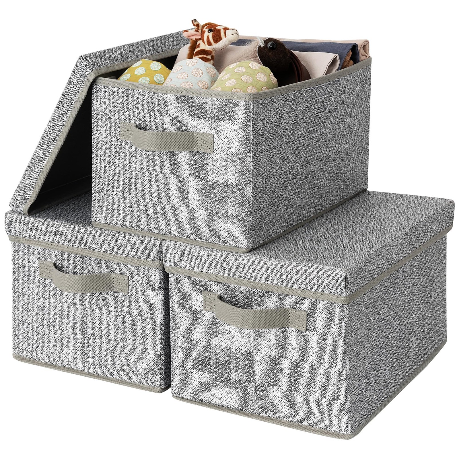 3Pcs Fabric Storage Boxes With Lids For Wardrobe Clothes Toy Foldable Linen 37 * 24 * 25cm (Grey)