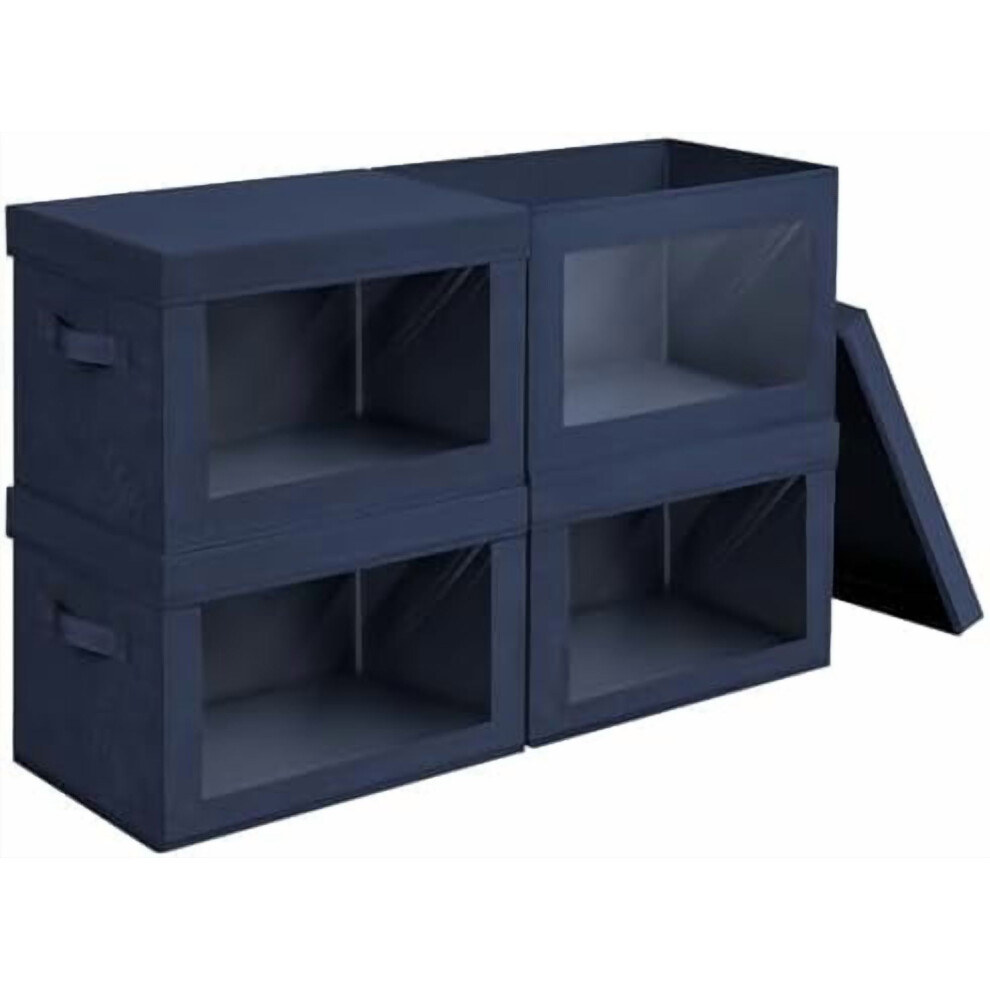 Foldable Fabric Storage Boxes with Lids & Clear Window â Navy Blue, 4-Pack, Compatible with Closet, Clothes, Yarn, Home Organization