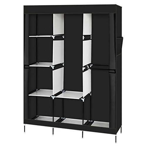 Karl home 5-Tiers 12 Compartment Canvas Wardrobe, Portable Fabric Wardrobe with Shelves and Cover for Hanging Clothes, Clothes Rail with Cover for Bedroom, 58" L x 17" W x 74" H, Black