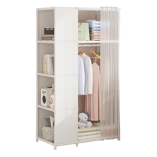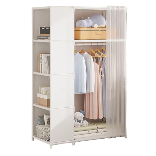 wenyuyu Portable Fabric Wardrobe, Clothes Storage Organiser with Hanging Rod & Cupboard Unit for Bedroom, Apartment,Living Room,Dorm, Easy to Assemble