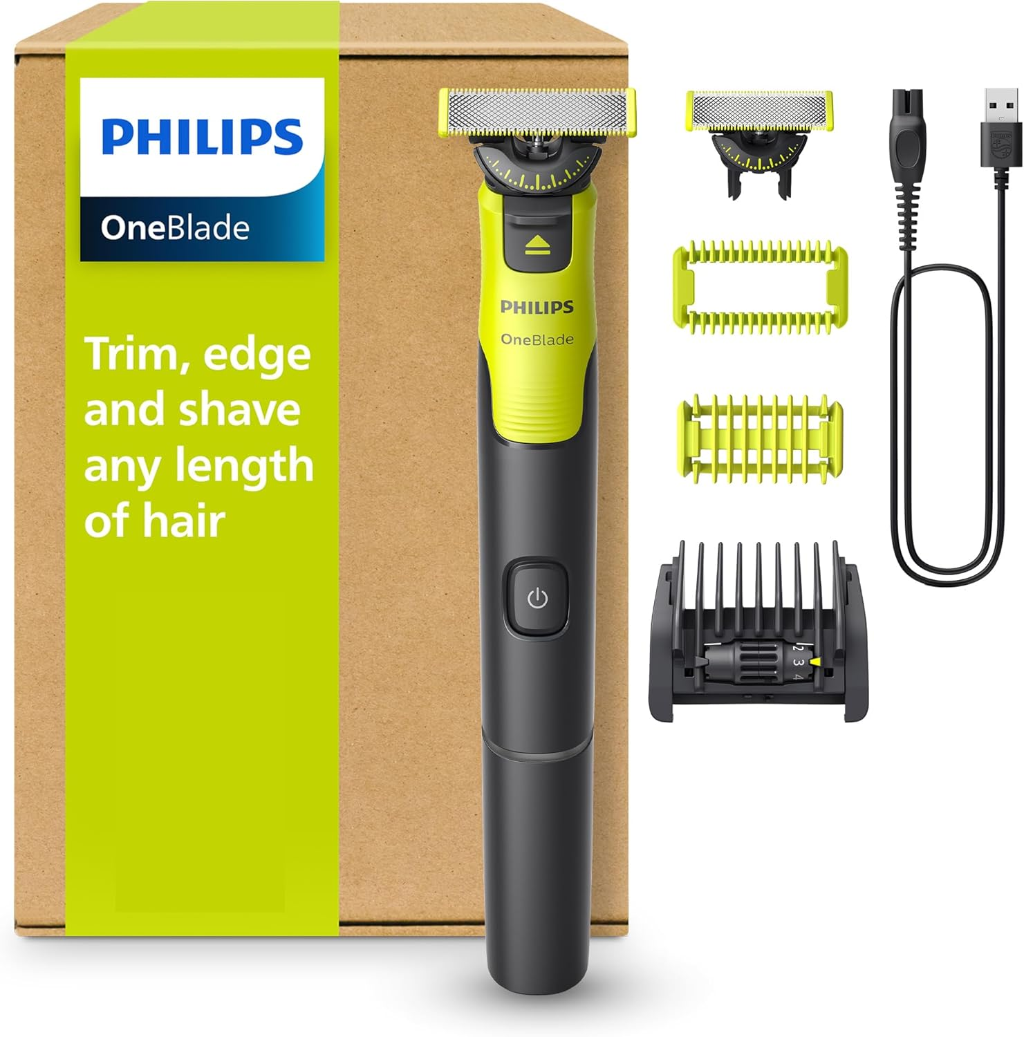 Philips OneBlade Pro, 3 tools in 1: Face Shaver, Beard and Stubble Trimmer + Body Styler for Men, 14-Lengths with LED Display, Wet and Dry Use, 1