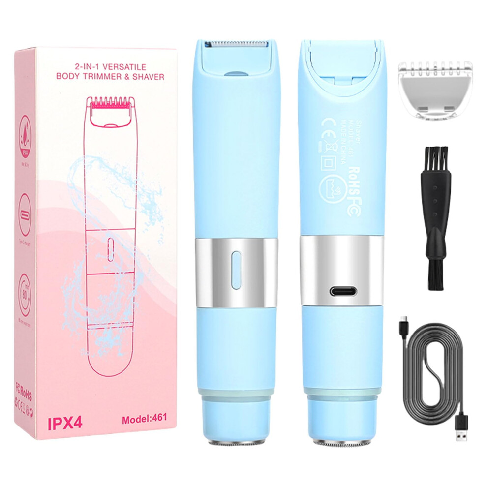 2-in-1 Women's Waterproof Electric Body Shaver with USB-C for Face, Legs, and Arms - Blue