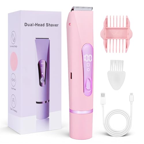 Electric Shavers for Women Face Pubic Hair, Dual-Head Ladies Razors for Legs Arms Underarm Full Body, Comfort Intimate Shaver for Womens Bikini Area IPX7 Waterproof Wet and Dry, USB-C Rechargeable