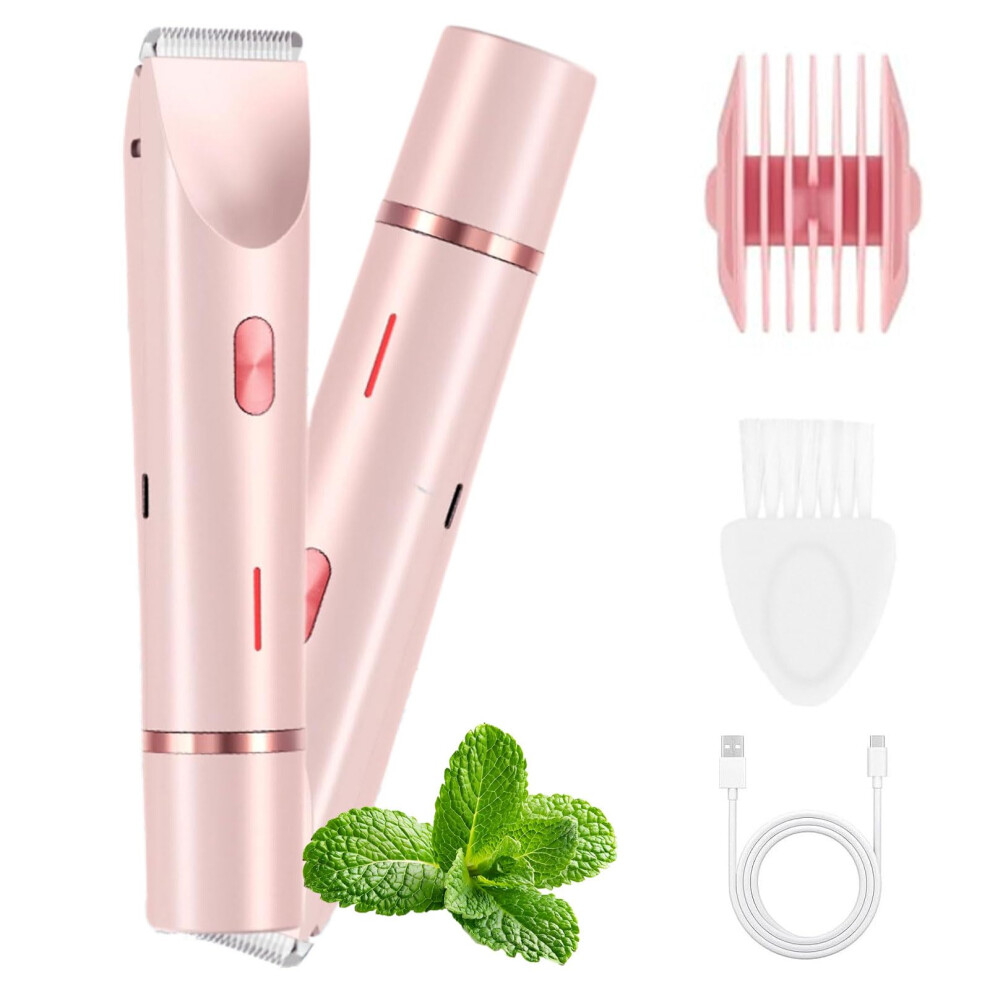 (Pink) 2-in-1 Bikini For Women Bikini Shaver With Heads Body And Facial Hair Removal Rechargeable Razors For Face Chin Pubic