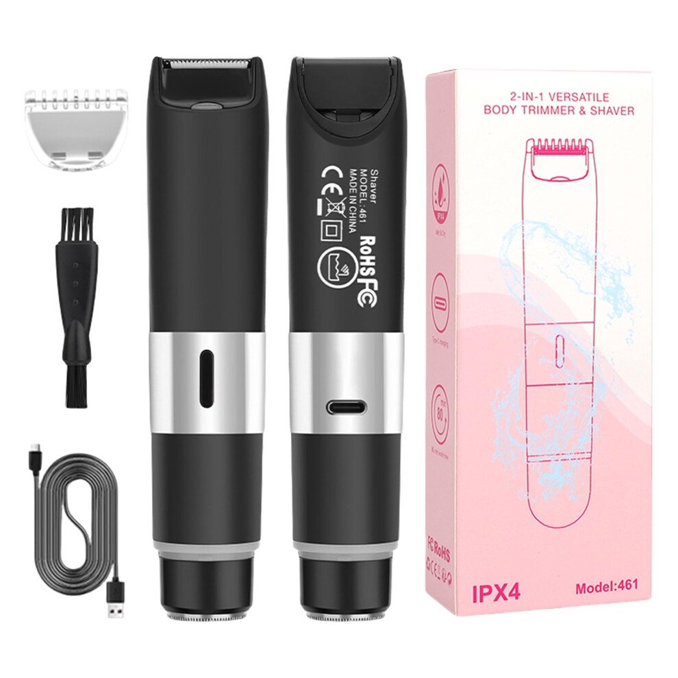 Bikini Trimmer for Women Electric Shaver 2-In-1 Body and Hair Removal Double for Pubic Face Underarm Legs
