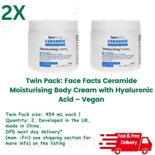 2x Face Facts Ceramide Moisturising Body Cream Lotion Hyaluronic Acid, Vegan