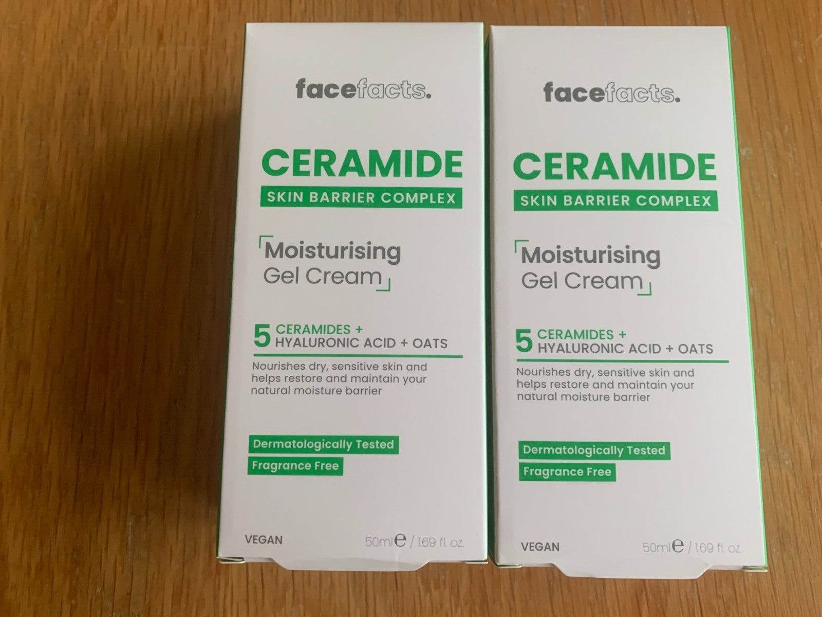 X2 Brand New FACEFACTS Ceramide Moisturising Gel Cream 50ml DUO VEGAN