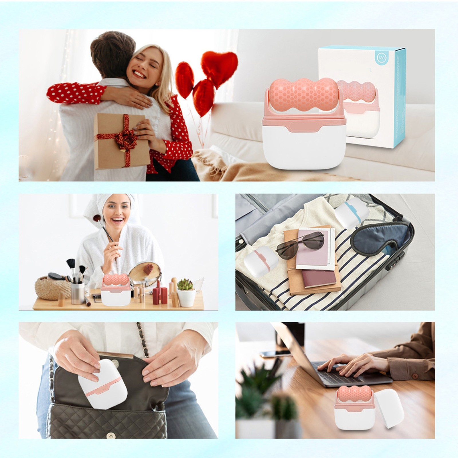 Face Eyes Ice Roller Puffiness Pain Relief Cold Compress Skin Firming Rolle SG