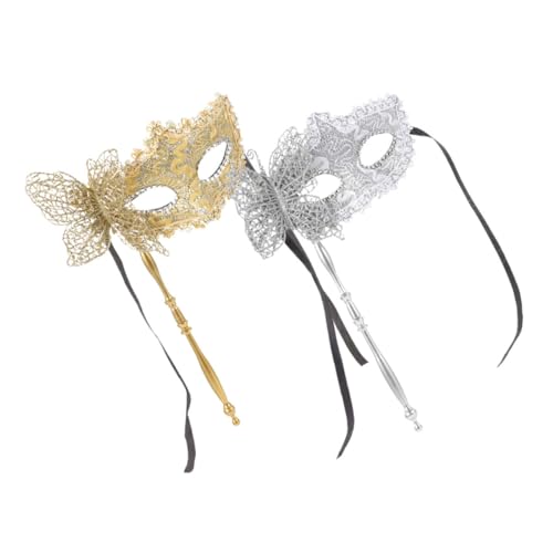 mayDONG Butterfly Masquerade Mask with Holding Stick - Half Face Mask for Halloween, Evening Prom, Carnivals