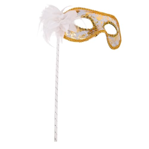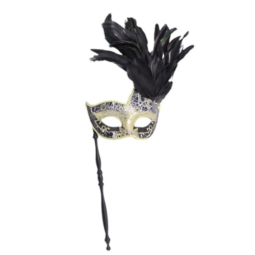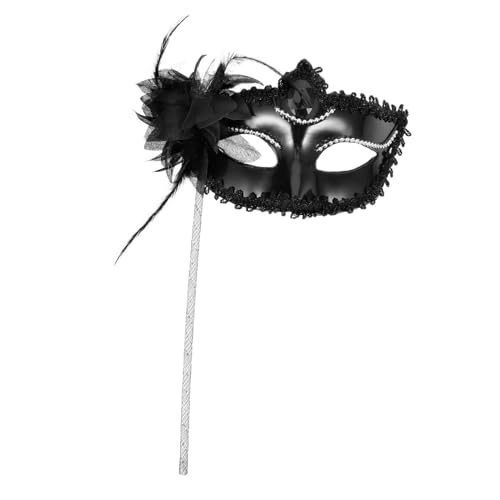 ibasenice Lightweight with Stick for Men and Women Reusable Plume Half Face Mask Comfortable Handheld Cosplay Accessory for Carnival and Fancy Dress Parties