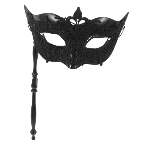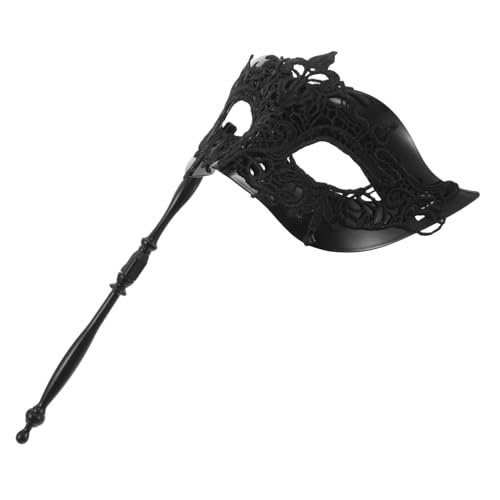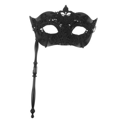 Lurrose Black Lace Venetian with Holding Stick for Halloween Mardi Gras Party Lightweight Handheld Half Face Mask with Intricate Lace Design Comfortable Fit for Masquerade Balls and