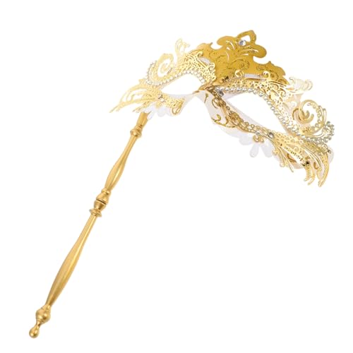 Cupimatch Women Handheld Masquerade Mask: Elegant Golden Metal Rhinestone Mask on Stick, Venetian Style Half Face Mask for Halloween, Costume Parties