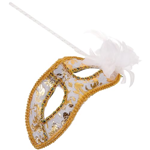 ibasenice White Venetian for Women with Stick Plume Lightweight Comfortable Half Face Ball Mask for Prom Costume Party and Cosplay Detailed Design