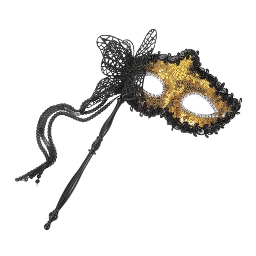 ABOOFAN Handheld Masquerade Mask on Stick for Women Gold Sequin Half-Face Carnival Mask Festival Photo Prop Sturdy Plastic