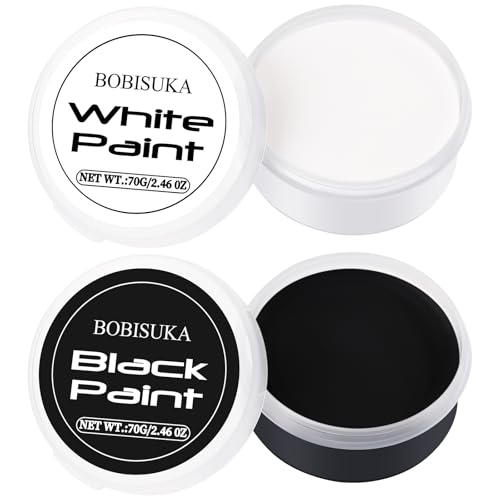 BOBISUKA Halloween Cosplay SFX Makeup Black + White Face Body Paint Special Effects Makeup Kit Dress Up Non Toxic Face Painting Kits for Adult Full Coverage Face paint Fx Make Up