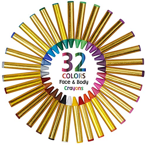 Dress Up America Face Paint Crayon Kit - Safe, Non-Toxic, Face and Body Paint Crayons Made in Taiwan - Halloween Makeup Face Painting Kit for Kids and Adults (32 piece set)