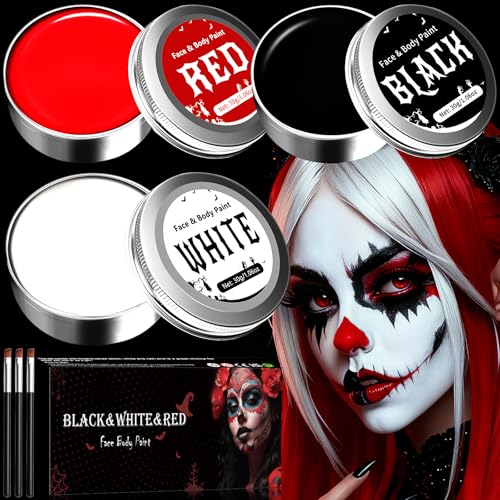 White Black Red Face Paint Halloween Makeup - Face Painting Kit SFX Makeup, Kids Adults Face Paints Halloween Facepaints Set for Zombie Vampire Skeleton Joker Clown Body Paint Halloween Make up