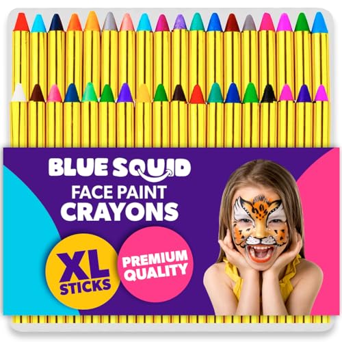 Blue Squid Face Paint Crayons for Kids - 36pcs XL Non-Toxic, Washable Body Paint Crayons - Our Face Painting Kit Makeup Sticks are Easy to Use, Safe for Sensitive Skin and Perfect for a Kids Party