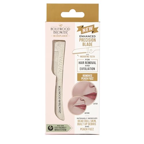 Hollywood Browzer Microplaner Razor - Enhanced Precision - Microfine Precision Dermaplaning Tool - Eyebrow Shaping - Face hair remover - Remove Peach Fuzz Hair - Eco-Friendly Wheatstraw - Pearl White