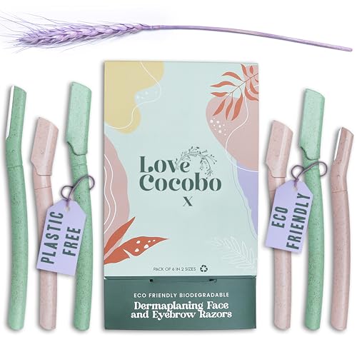 Love Cocobo | Dermaplaning Blades for Face | Eco Wheat Straw Eyebrow Razor | Face Razors for Women | Facial Hair Remover for Women | Peach Fuzz Remover | 6 Pcs 2 Sizes Biodegradable Dermaplane Tool