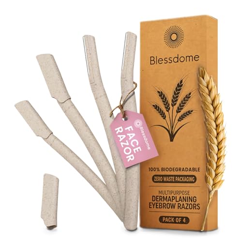BLESSDOME 4Pcs Biodegradable Wheat Straw Eyebrow Razor Shaper for Women | Peach Fuzz & Facial Hair Remover and Trimmer | Exfoliating Dermaplane Tool |Eco-Friendly Dermaplaning Blades for Face