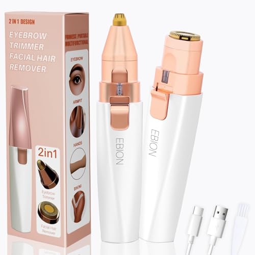 EBION Facial Hair Remover for Women,Eyebrow Trimmer & Face Shavers for Facial Hair Women 2 in 1,Rechargeable Electric Eyebrow Razor Lady Shavers for Face,Body,Lips,Beard,Arms