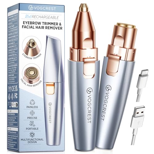 VG VOGCREST Eyebrow Facial Trimmer: 2 in1 Rechargeable Facial Hair Removal and Eyebrow Shaver - Face Lips Body Painless Facial Razor with Built-in LED Light (White)