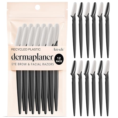 Kitsch Dermaplaning Blades For Face - Face Razors for Women | Eyebrow Razor & Facial Hair Remover | Exfoliates Facial Skin, Eyebrow Shaper | Dermaplaning Tool, 12pc (Black)