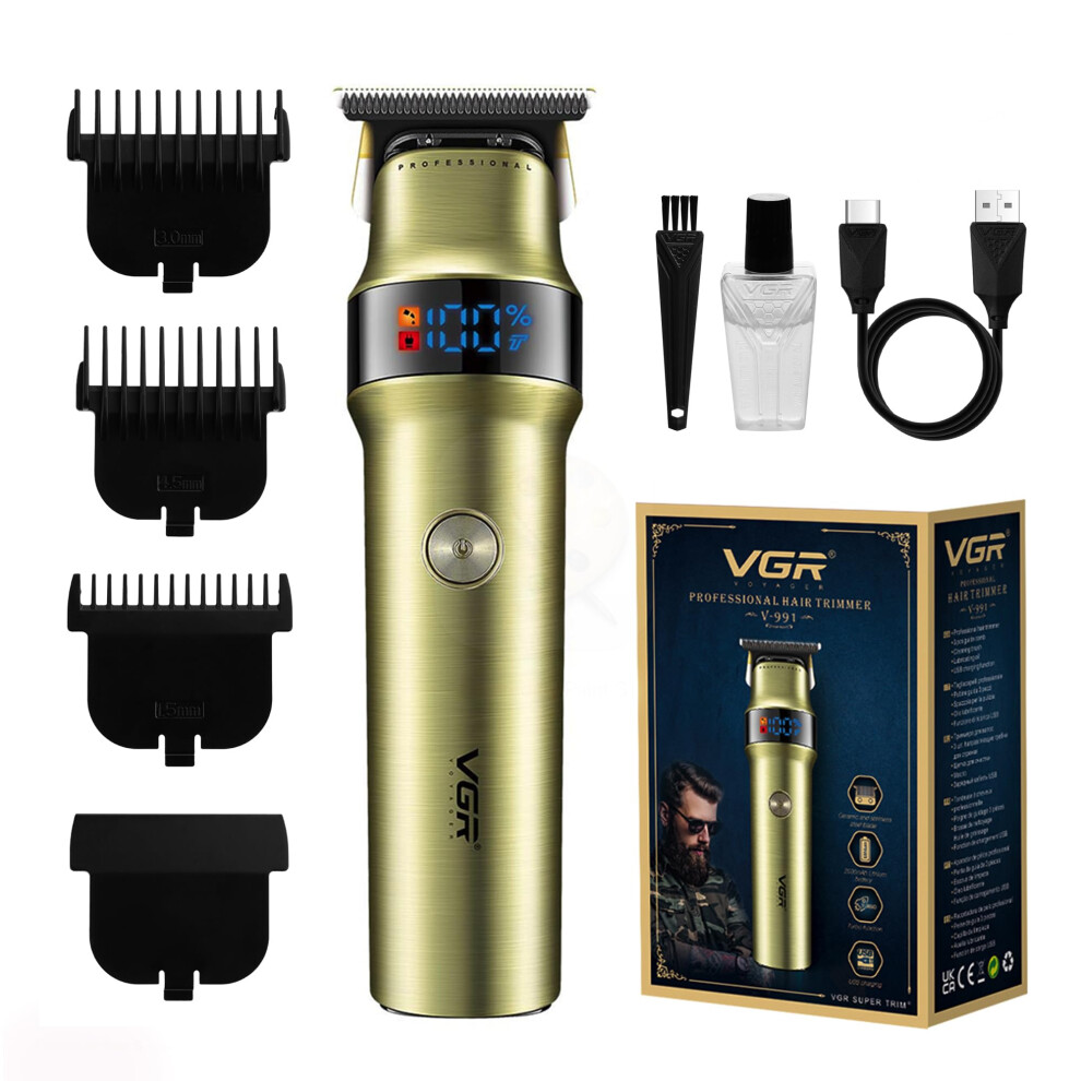 VGR Cordless Beard Trimmer Men Rechargeable USB-C - 400 Min Battery - Professional Ceramic Blade Clippers - Electric Face Hair Shaver Razor - Facial
